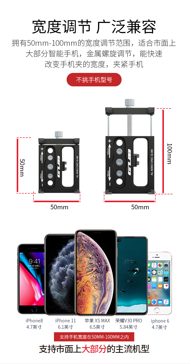 尺寸:長50mm(可調至100mm),寬50mm,夾子口徑Φ31.8mm