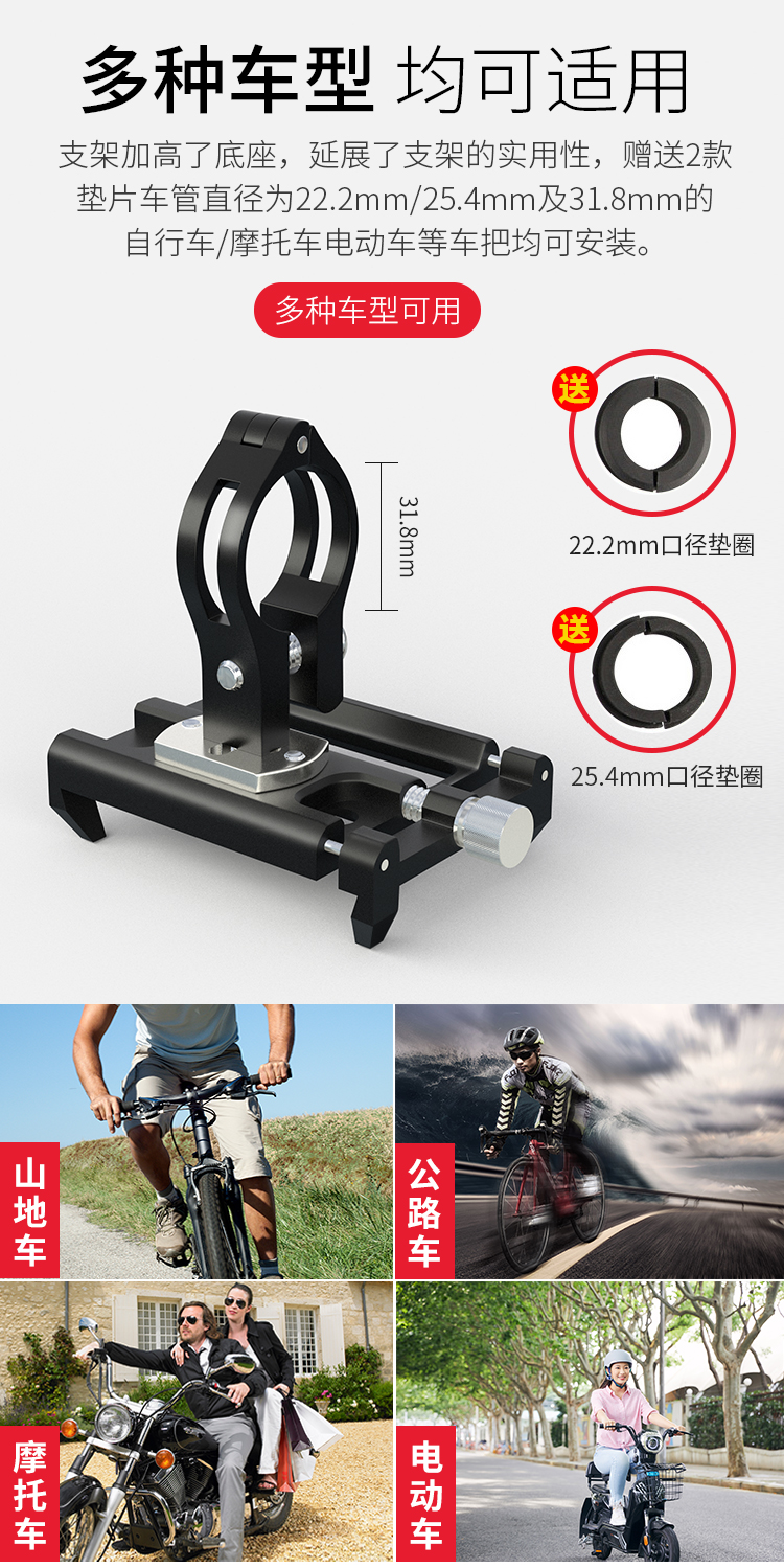 簡介:可簡單快捷安裝在車把或車頭,能讓您在外出騎行時輕松享受音樂,亦可導航為您指路,穩(wěn)定牢固,四爪扣更易固定手機。