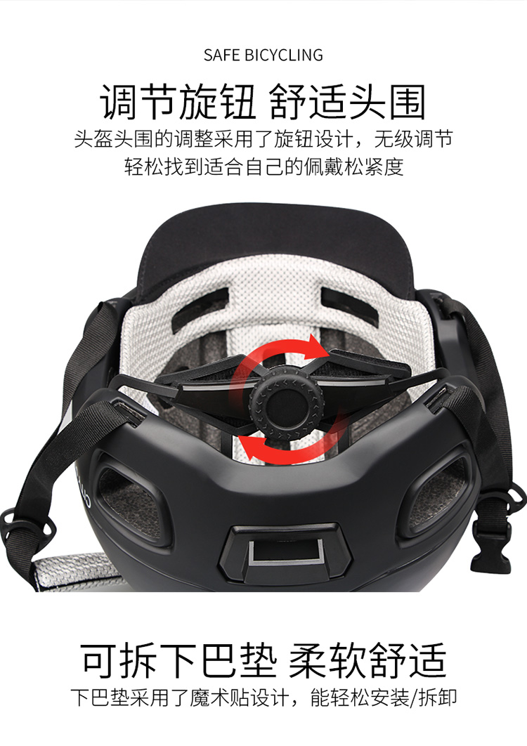 特色:簡(jiǎn)潔大方的外觀設(shè)計(jì),融入聰明的設(shè)計(jì)更適合城市休閑騎行,個(gè)性可拆卸軟性帽檐,尾部帶警示燈安裝位,尾部加強(qiáng)透氣孔可鎖在車上減少拎取。
