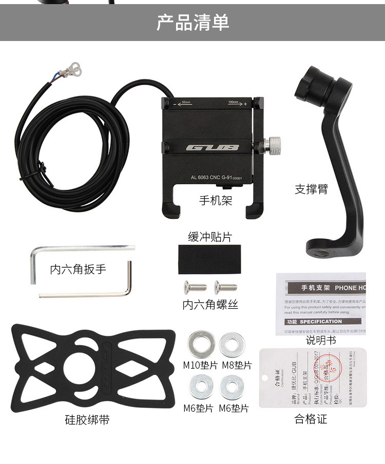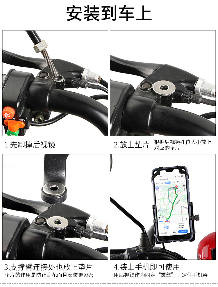 特點(diǎn):全鋁合金架體,四對(duì)位加長(zhǎng)固定部+強(qiáng)化底托,加粗支撐臂,支持360度旋轉(zhuǎn),更標(biāo)配穩(wěn)固綁帶,連接電瓶后可為手機(jī)充電,摩托車/電動(dòng)車等都可使用!