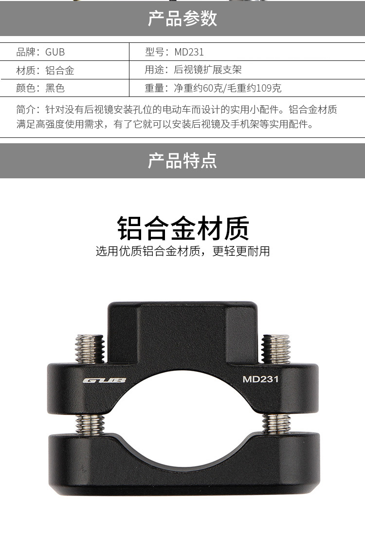 產(chǎn)品:GUB MD231 摩托車擴展支架