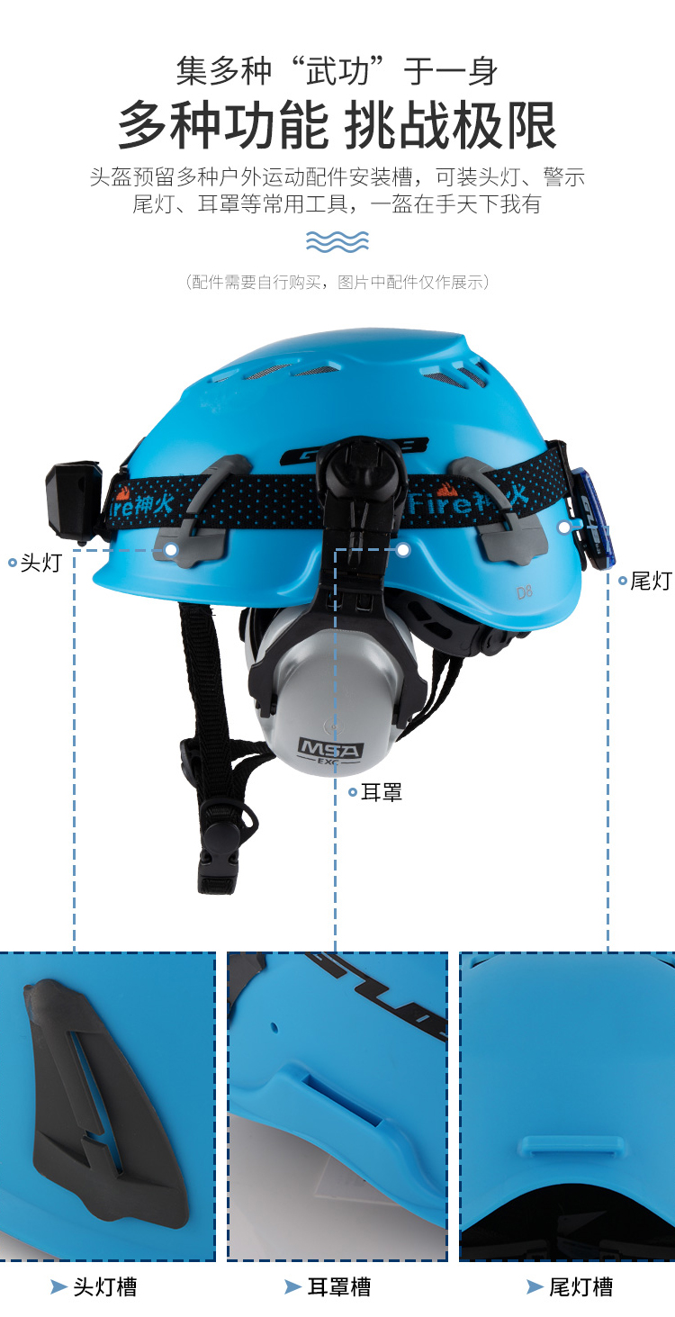 特色:簡約大方的外觀設(shè)計,PP+EPS高強度外殼不懼強烈沖擊,貼心半包邊內(nèi)襯佩帶舒適,自帶頭燈卡扣,支持加裝頭燈。帶耳罩插口,可加裝防噪耳罩。