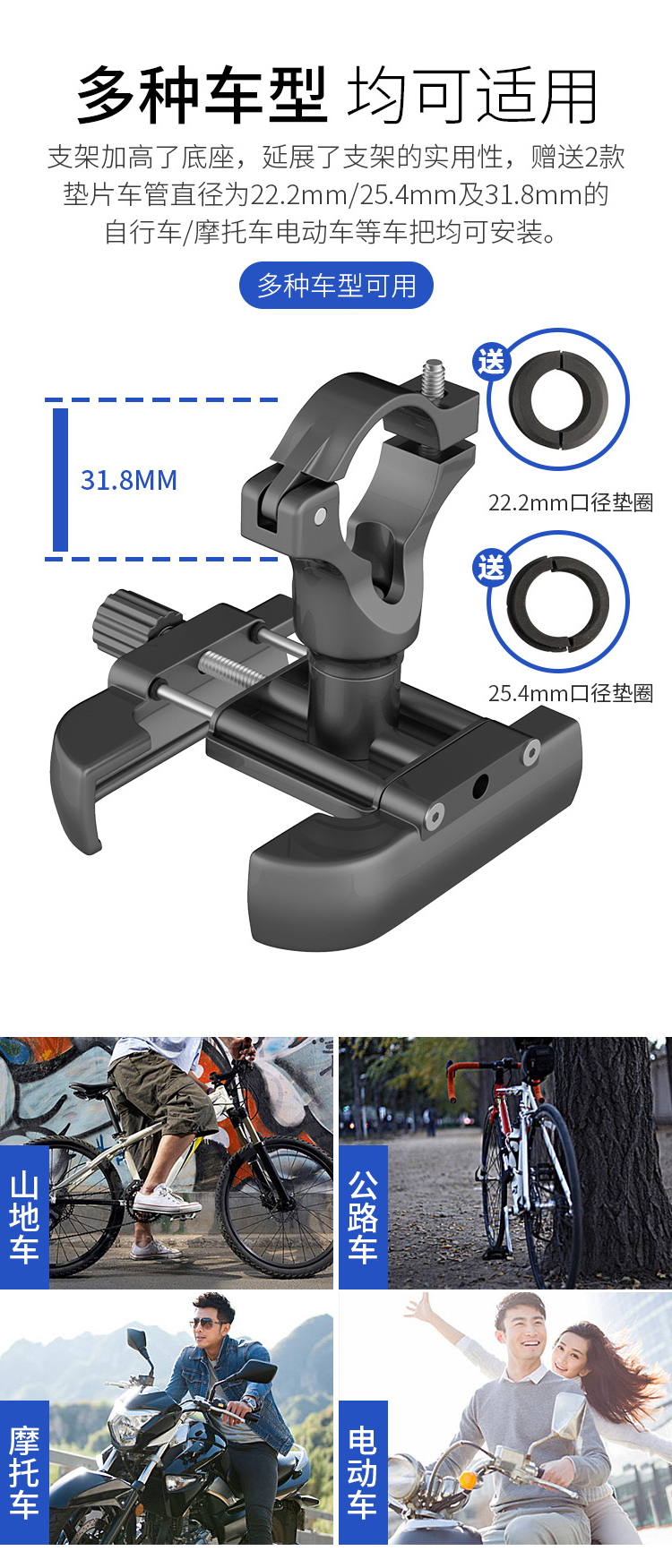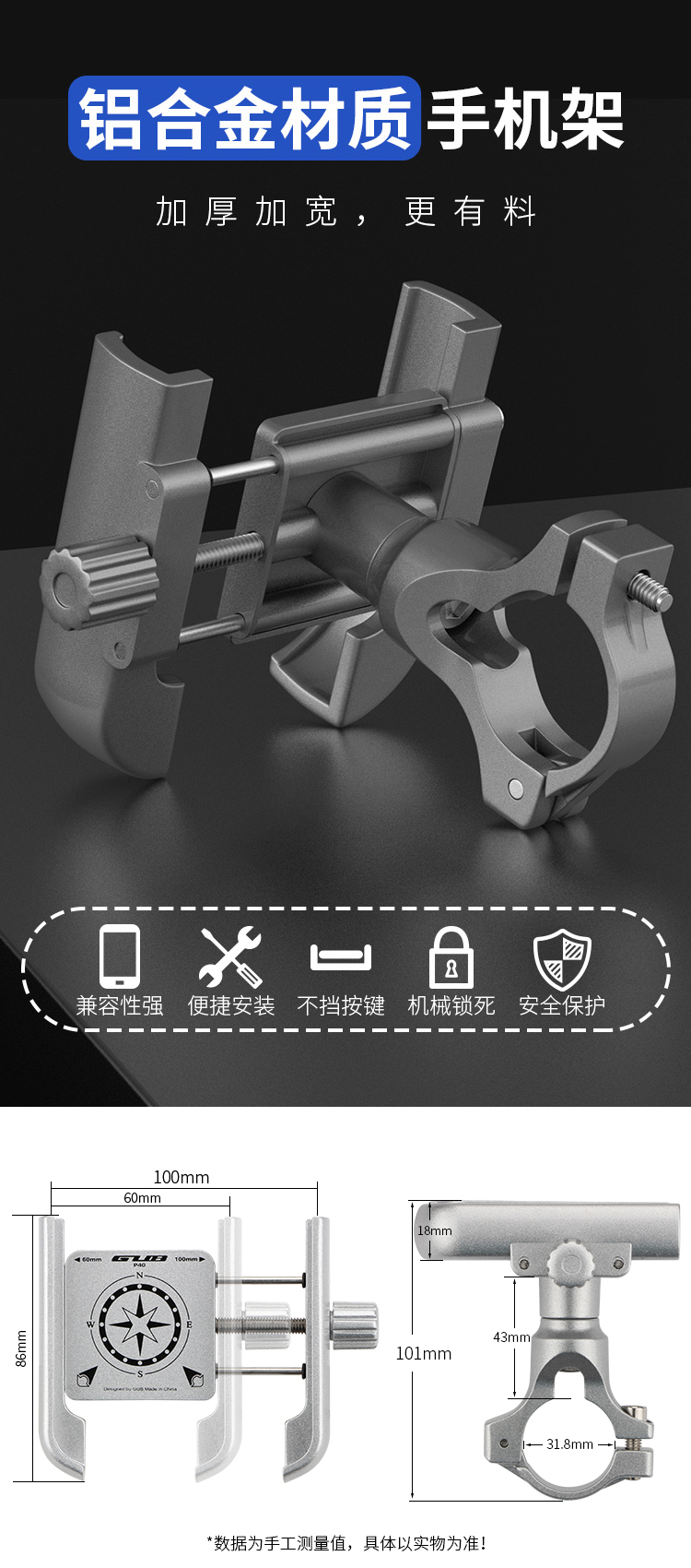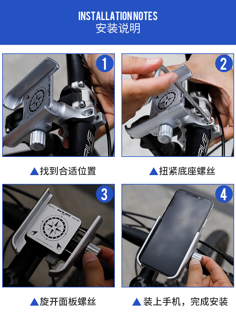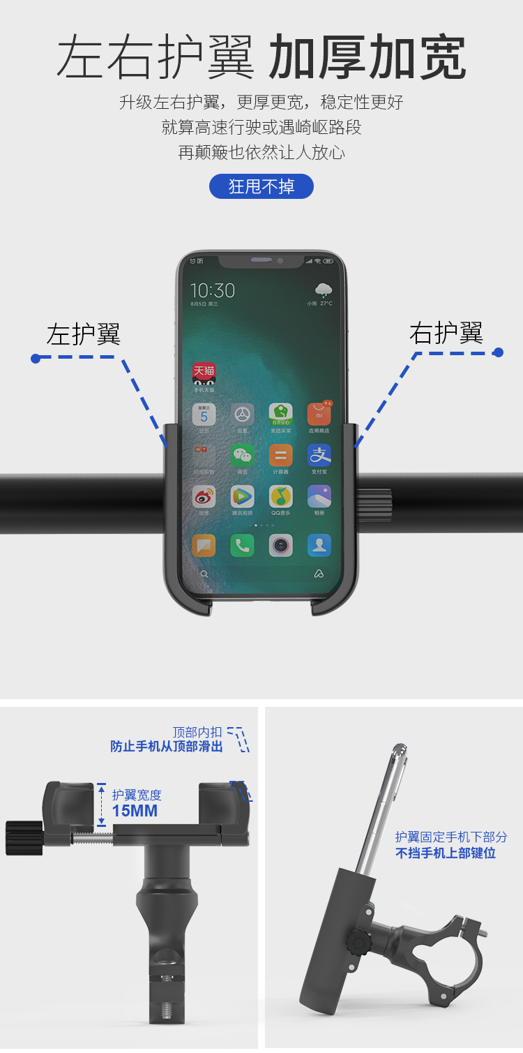 特點(diǎn):全鋁合金架體,加厚加寬使用更安全。免工具平面360度旋轉(zhuǎn),高兼容性不挑手機(jī)型號(hào),自行車、電動(dòng)車等都可使用!