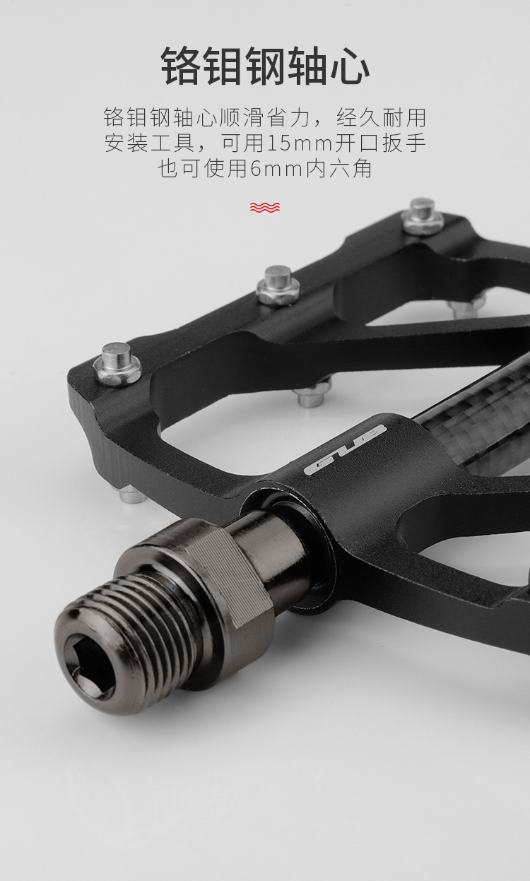 材質(zhì):鋁合金腳踏主體+碳纖維軸套+鉻鉬鋼軸心