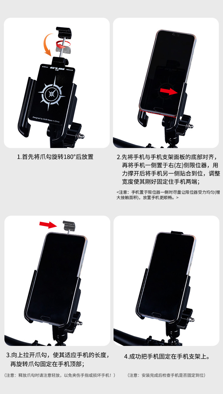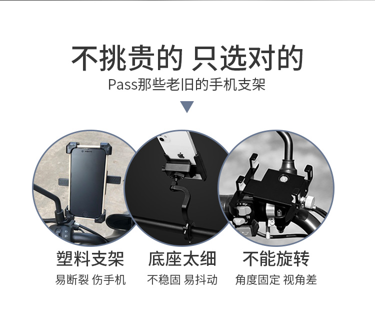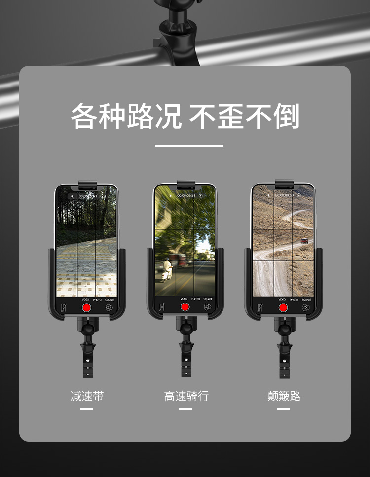 特點:鋁合金架體,高兼容性不挑手機(jī)型號,摩托車、電動車等都可使用,四面環(huán)繞固定,夾手機(jī)更牢固,快速取放省時省力,雙萬向球旋轉(zhuǎn)系統(tǒng),滿足多場景使用需求。