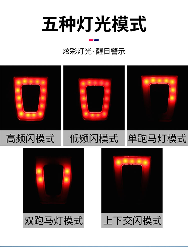 續(xù)航時(shí)間:前后一起約3小時(shí) ,單燈使用約6小時(shí)雙擊控制前燈開關(guān),單擊控制尾燈.