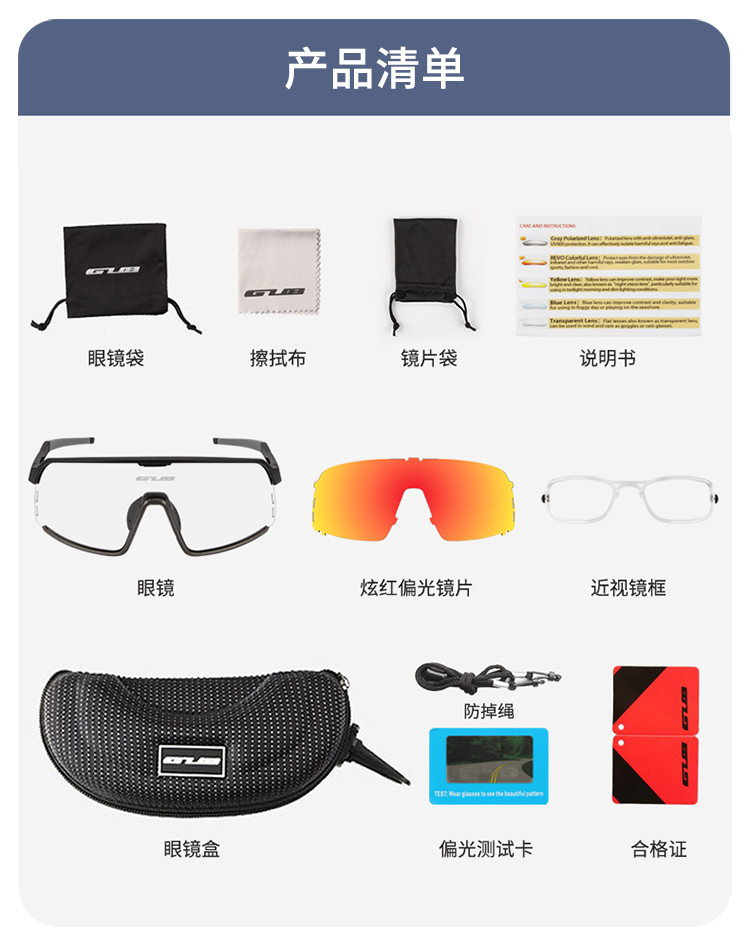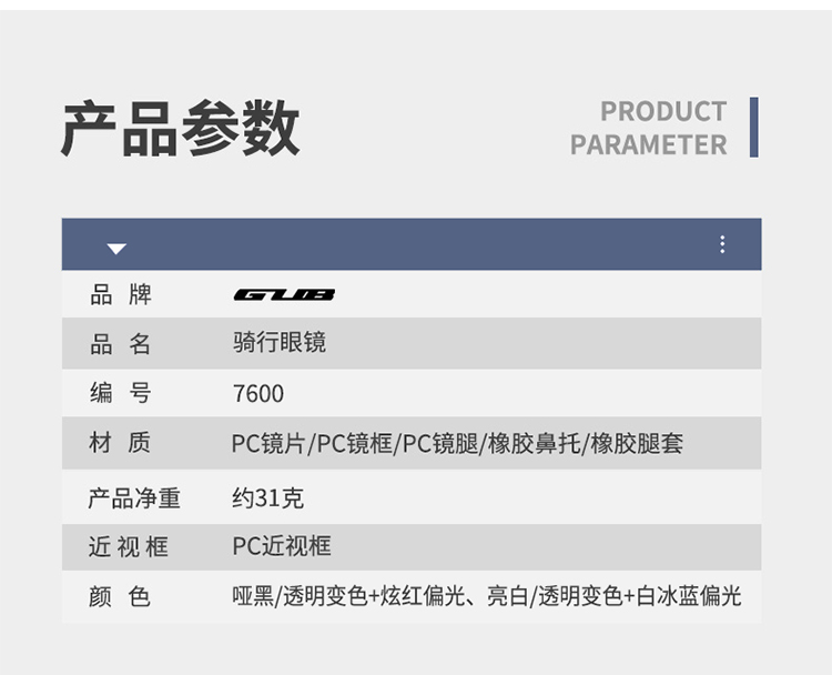 顏色:啞黑/透明變色+炫紅偏光、亮白/透明變色+白冰藍(lán)偏光