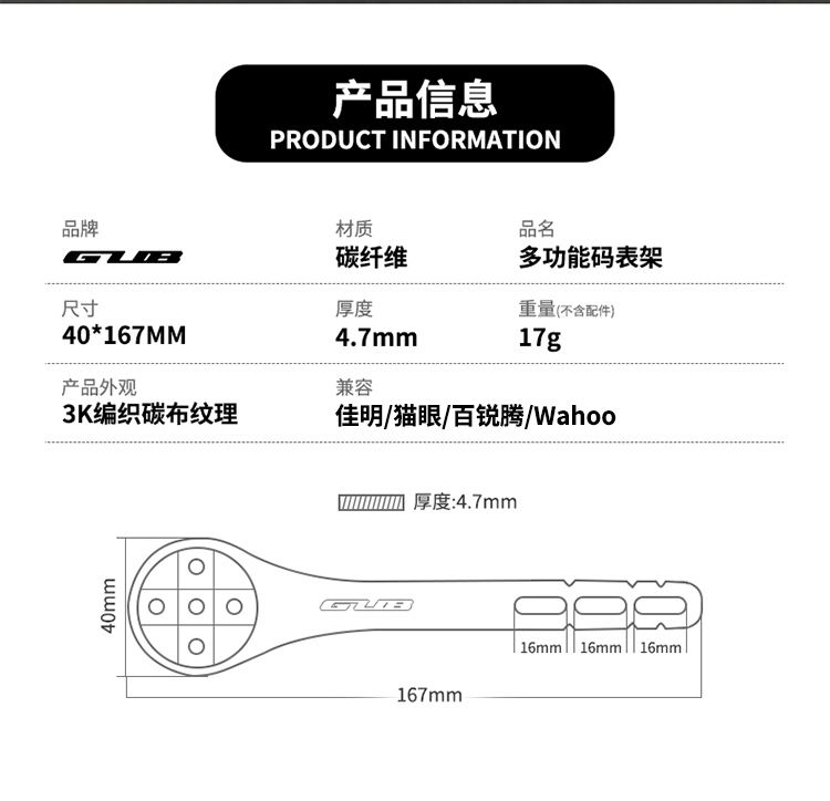 產(chǎn)品:GUB 695 碳纖維一體公路彎把碼表架