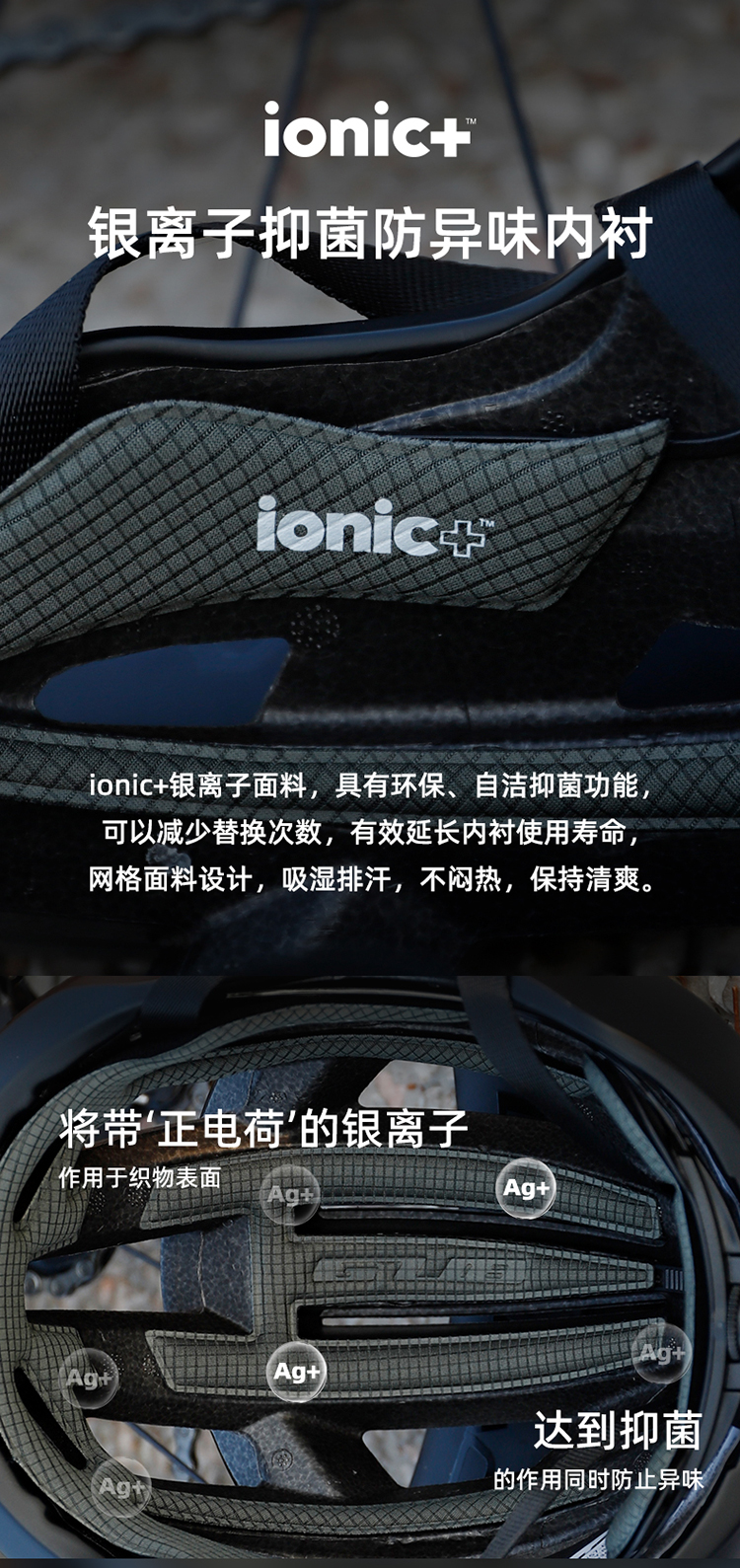 特點:ionic+銀離子抑菌內(nèi)襯(可選3D LATTICE強化內(nèi)襯),PC+EPS雙重防護,碼數(shù)齊全覆蓋人群廣,反光LOGO夜騎更安全,多通風孔,多色可選。
