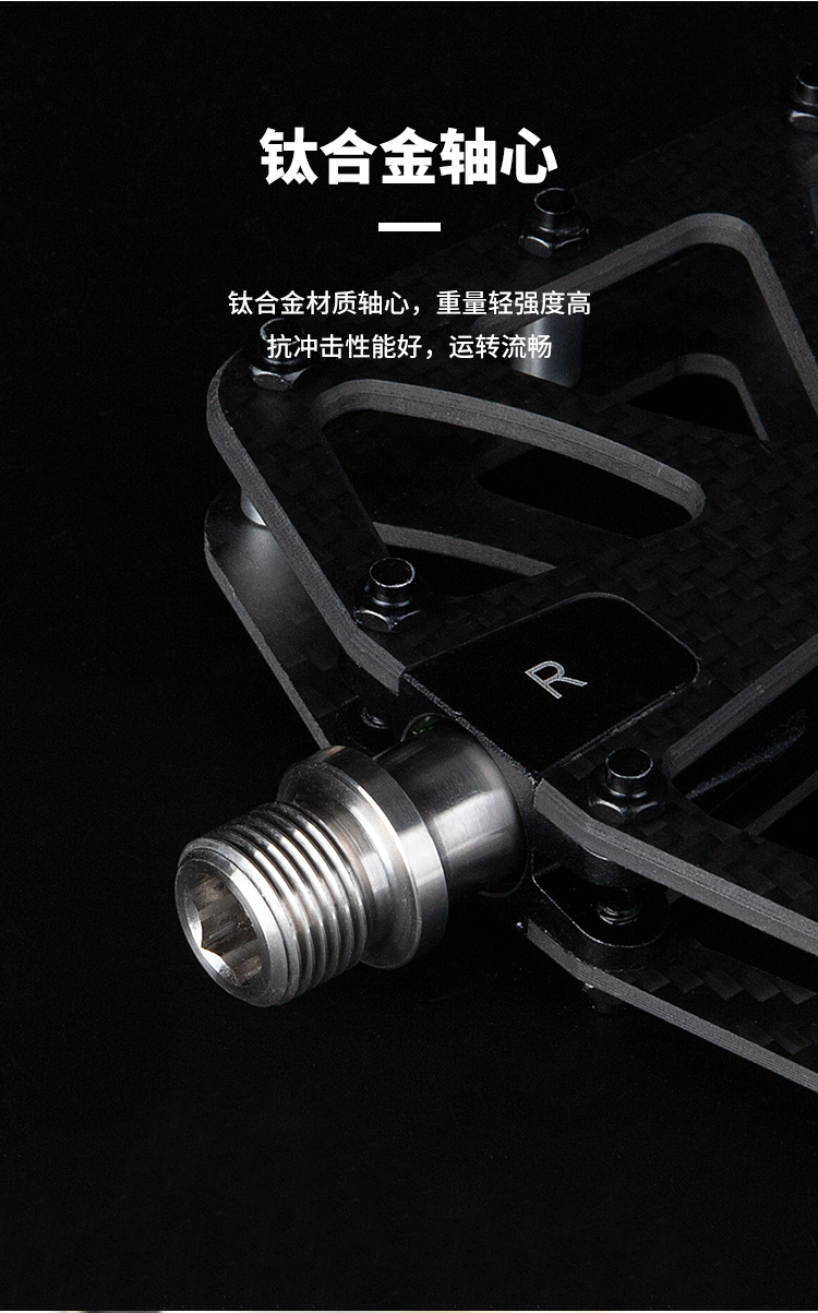 材質(zhì):碳纖維踏板+鋁合金軸套+鈦合金軸芯