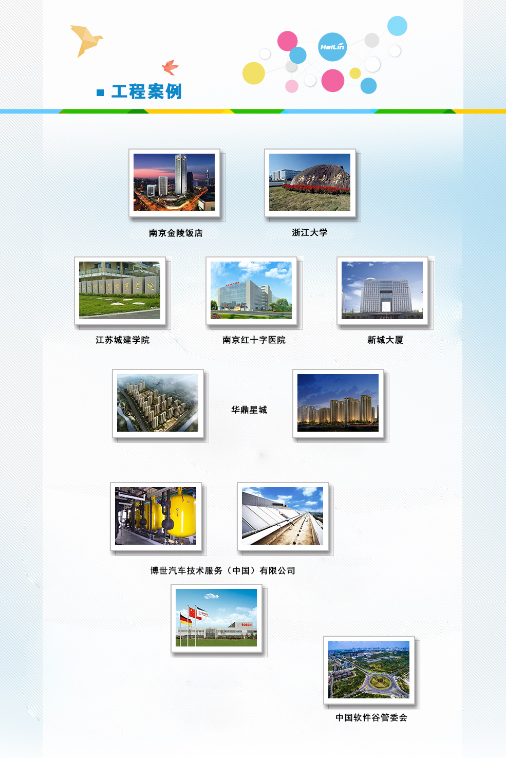 海林積極參與鳥巢、水立方、奧運村、APEC等國家重大項目、多項國家及省市的地標性建筑項目,以及機場、高鐵站、地鐵站、醫(yī)院、學校等重大項目;同時,海林與國內(nèi)多家知名房地產(chǎn)商如萬科、綠地、金地、綠城等達成了戰(zhàn)略合作,將建筑室內(nèi)舒適環(huán)境改善及節(jié)能解決方案的新思路、新技術、新產(chǎn)品廣泛應用于公共建筑和住宅中,實現(xiàn)了舒適及節(jié)能應用,為中國的節(jié)能環(huán)保事業(yè)及工作生活環(huán)境的改善發(fā)揮著巨大的作用。