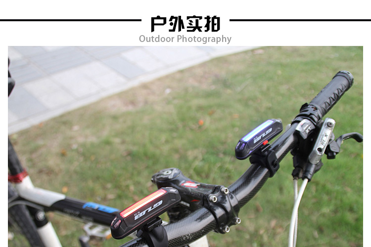特性:LED技術,COB整面發(fā)光,高亮100流明設計,實現(xiàn)整體流暢設計;配備USB接口,可循環(huán)充電;2種模式7種效果可循環(huán)切換;電池自動保護功能,電壓低于2.8V不工作;硅膠捆扎固定方式,120度方位調整,方便拆卸安裝;方型背扣設計,可橫向和縱向不同角度安裝;可安裝在坐管,下叉,車把手,前叉等。