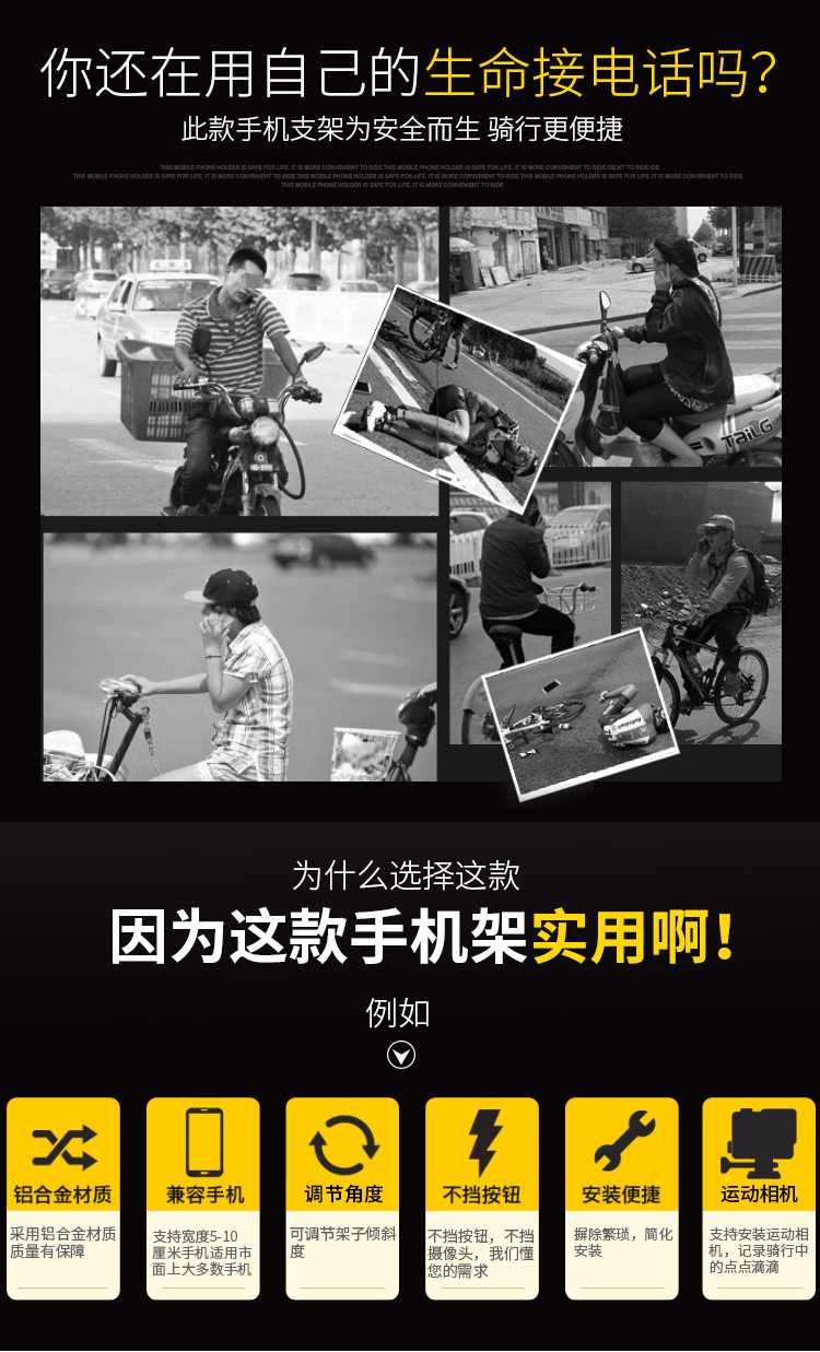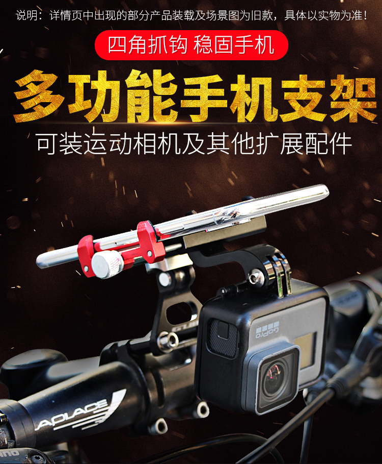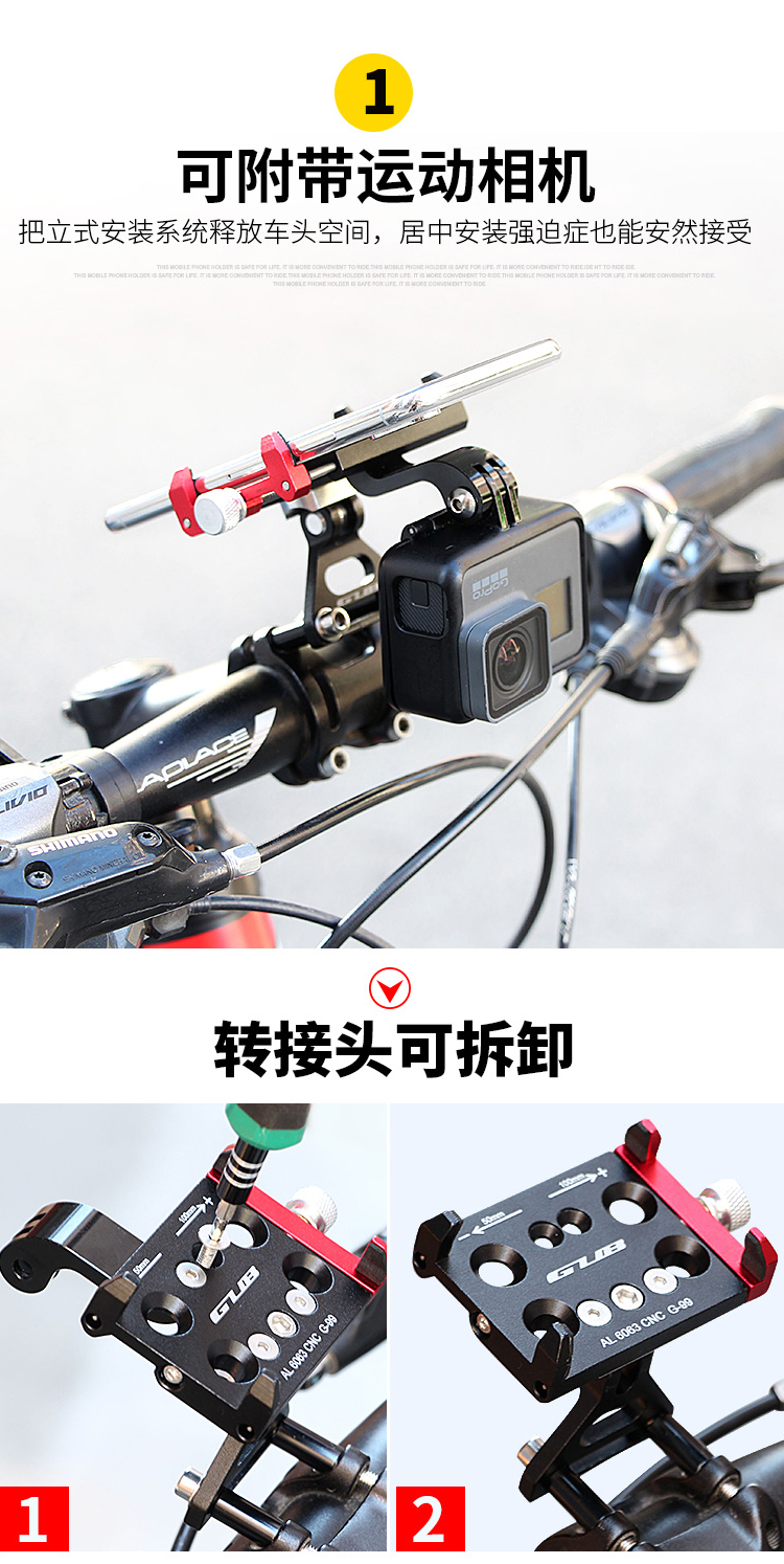 特點:全鋁合金架體,把立式安裝系統(tǒng)(釋放車頭空間,居中安裝強迫癥也能安然接受),可調(diào)節(jié)角度,附帶可拆卸運動相機轉(zhuǎn)接頭。