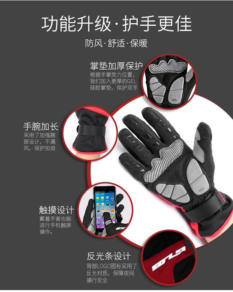 材質:手背防風復合面料,手掌超纖面料