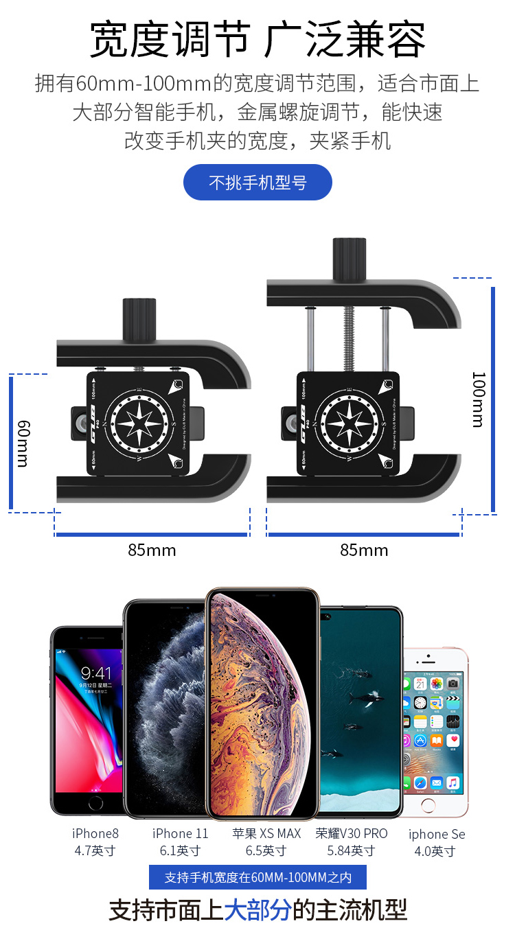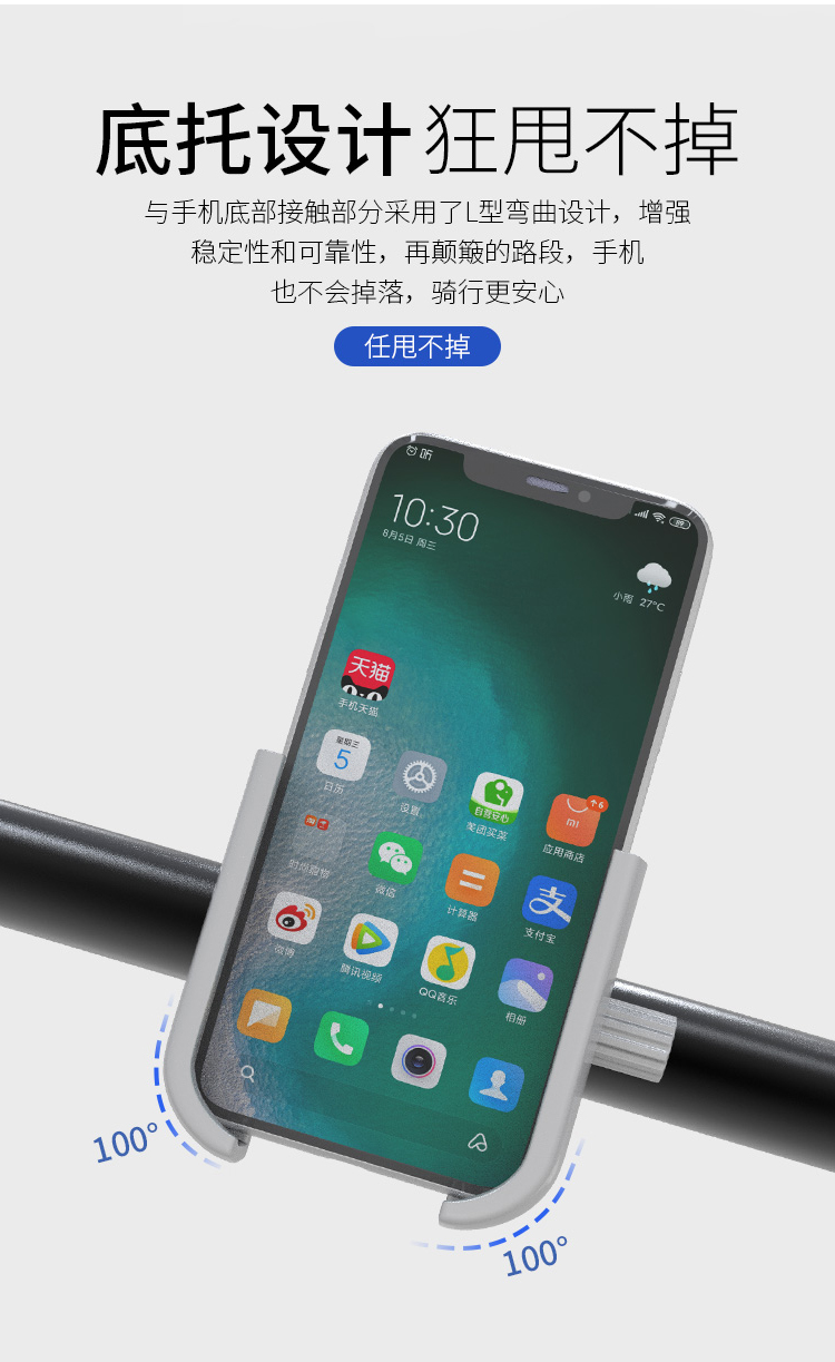 特點(diǎn):全鋁合金架體,加厚加寬使用更安全。免工具平面360度旋轉(zhuǎn),高兼容性不挑手機(jī)型號(hào),自行車、電動(dòng)車等都可使用!