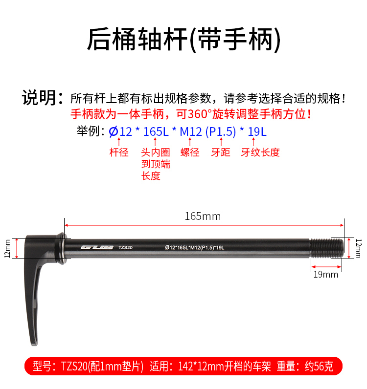 說明:請根據(jù)車架尺寸選擇合適的桶軸桿!