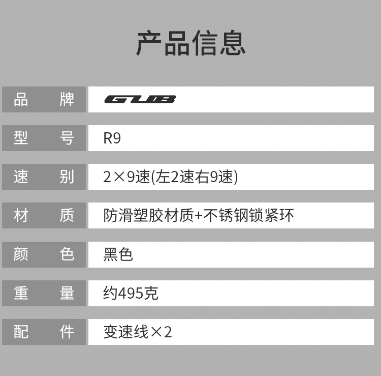 規(guī)格:2*9速(左2速右9速)(僅兼容SHIMANO系統(tǒng))