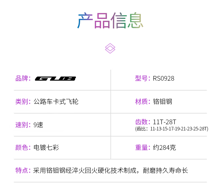 名稱:GUB RS0928 公路車飛輪
