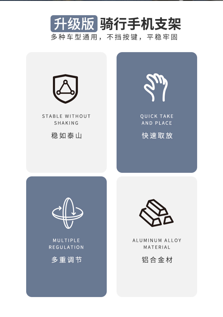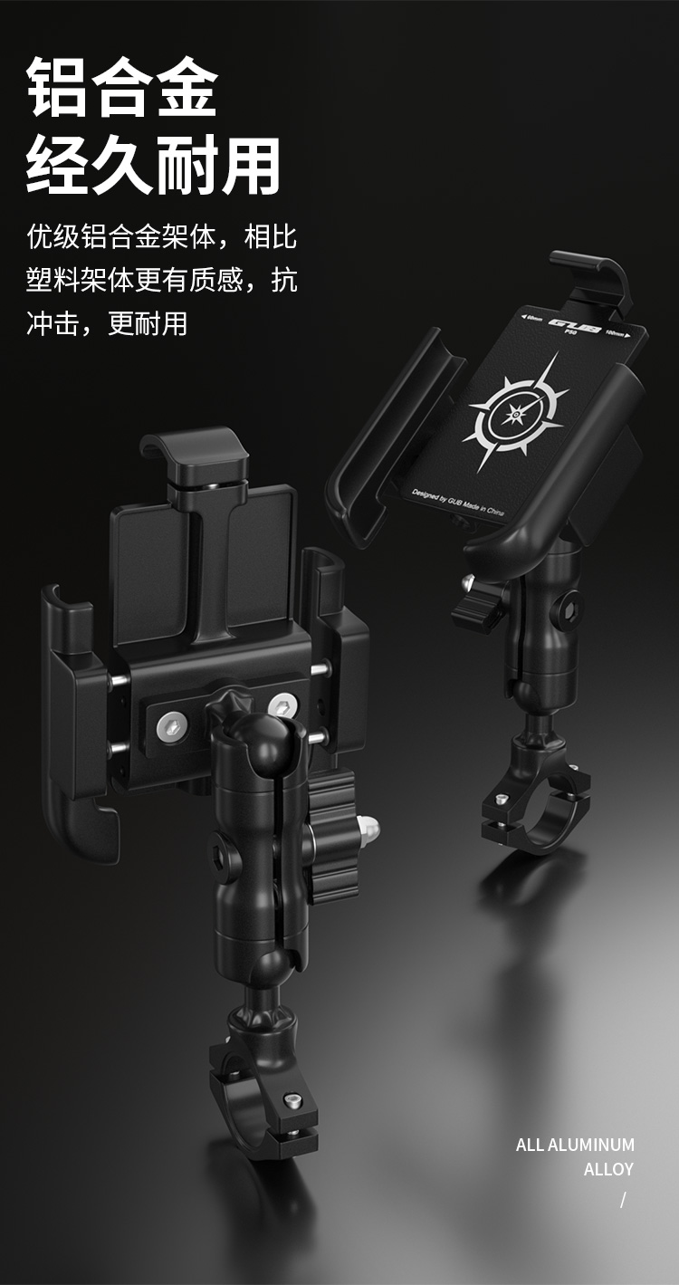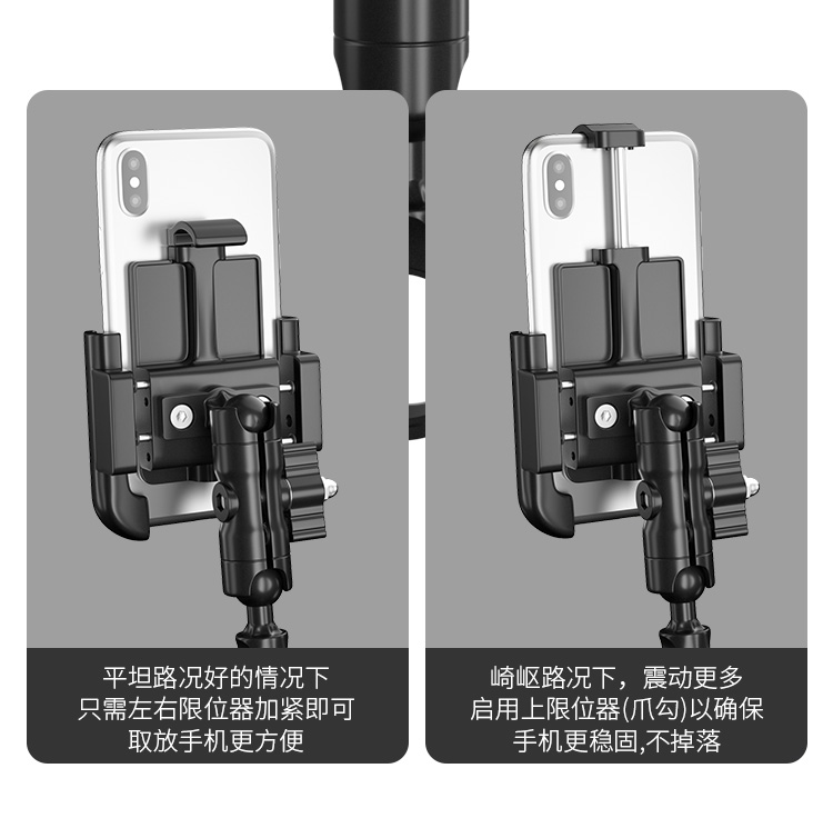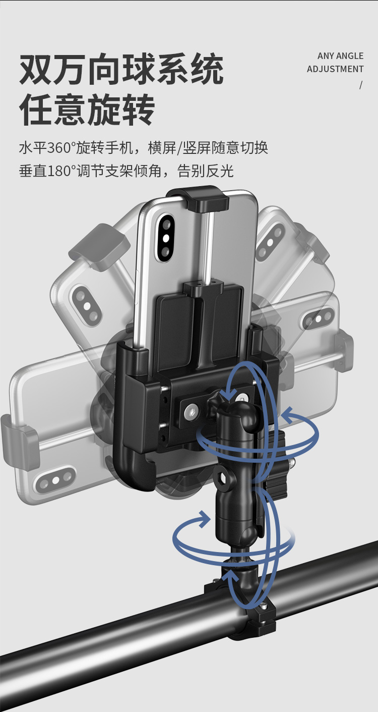 特點:鋁合金架體,高兼容性不挑手機(jī)型號,摩托車、電動車等都可使用,四面環(huán)繞固定,夾手機(jī)更牢固,快速取放省時省力,雙萬向球旋轉(zhuǎn)系統(tǒng),滿足多場景使用需求。