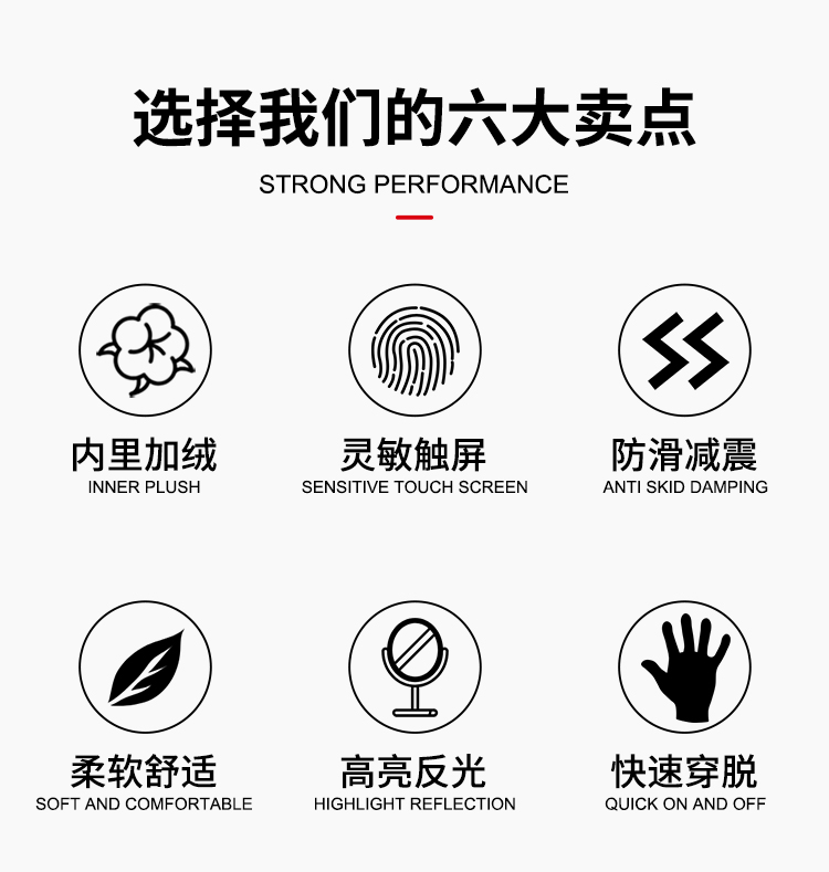 材質(zhì):防風(fēng)復(fù)合面料,硅膠掌墊