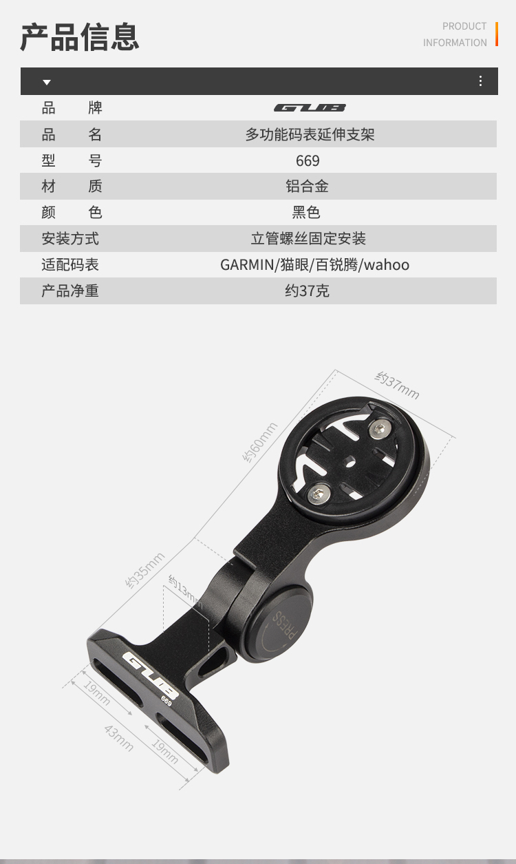 產(chǎn)品:GUB 669 鋁合金碼表架