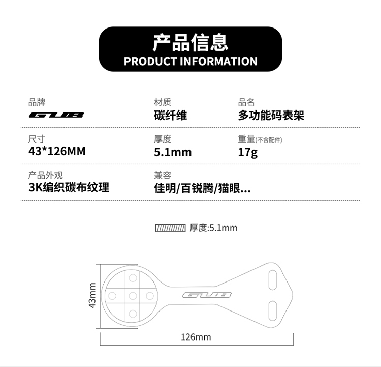 產(chǎn)品:GUB 698 碳纖維一體公路彎把碼表架