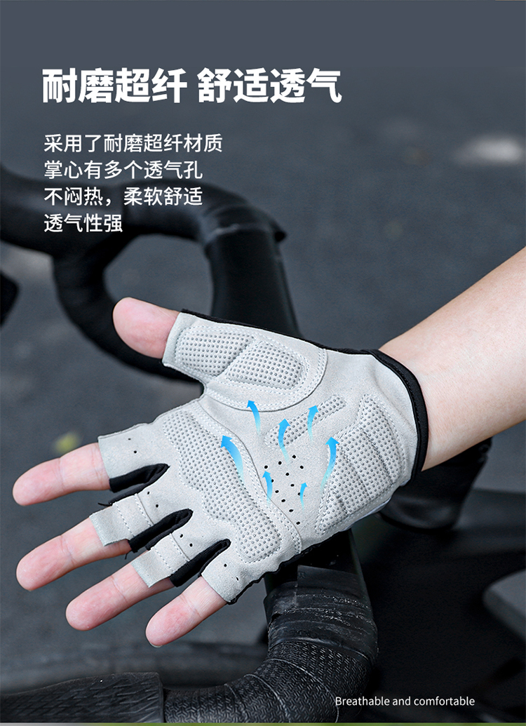 特點(diǎn):手背高彈貼合,舒適透氣,掌心柔軟防滑,帶透氣孔排汗效果好,SBR掌墊減震耐磨