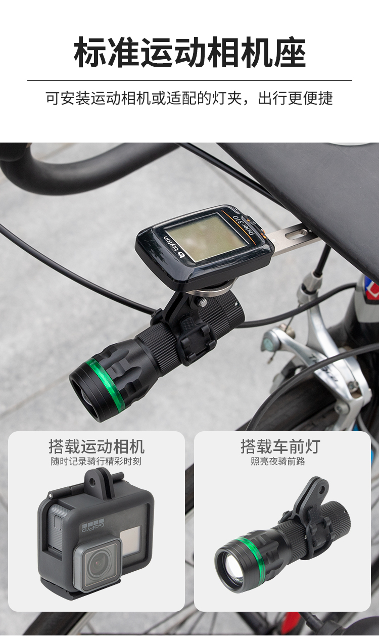 配置:配運(yùn)動相機(jī)轉(zhuǎn)接座,wahoo、佳明、百銳騰和貓眼碼表接座