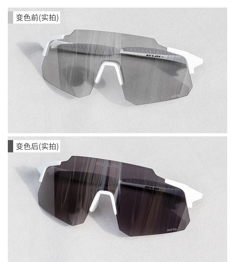顏色:啞黑框腳/防霧透明變色片、亮白框腳/防霧透明變色片