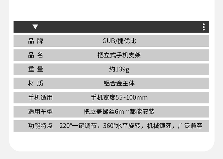 重量:約139克(單手機架)/約173克(毛重)