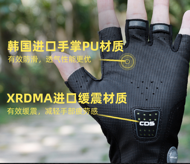 材質(zhì):手背高彈透氣中字格面料,手掌采用韓國進口PU和進口XRDMA緩震材質(zhì)填充墊