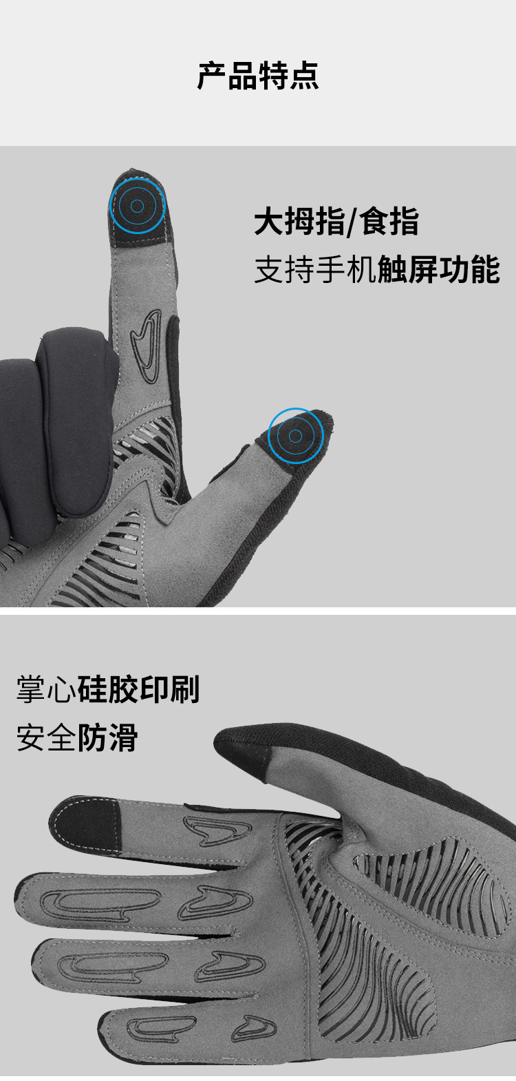 特點:內(nèi)里加絨,抵御寒風(fēng),柔軟舒適,3D立體裁剪,防滑耐磨,支持觸屏