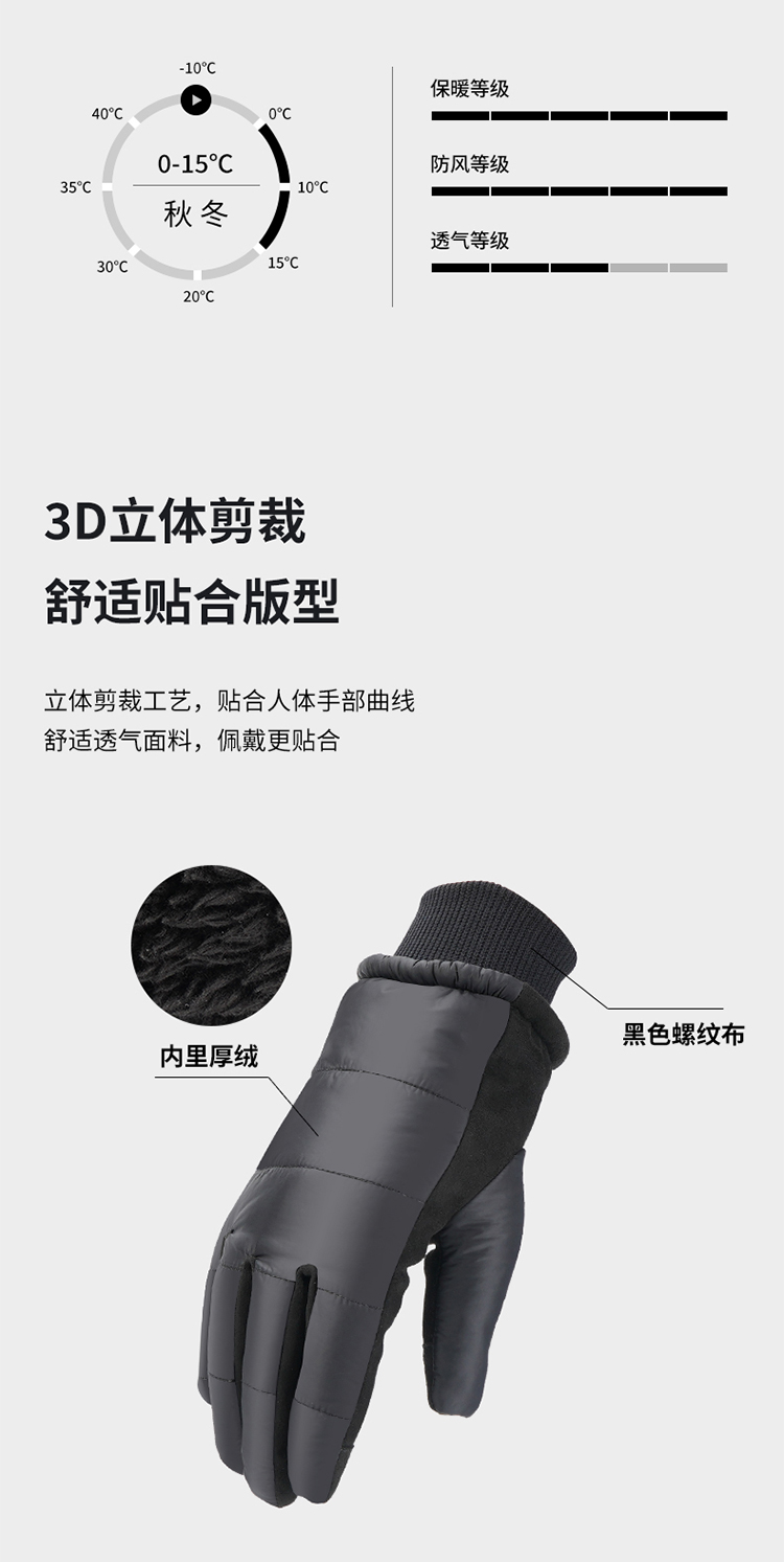 特點(diǎn):內(nèi)里加絨,抵御寒風(fēng),柔軟舒適,3D立體裁剪,防滑耐磨