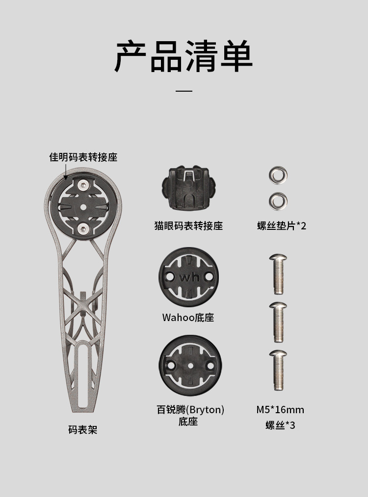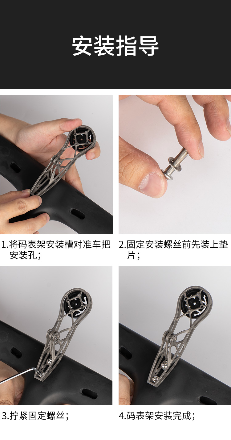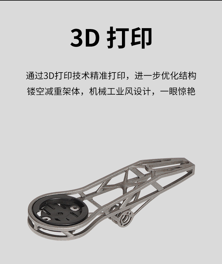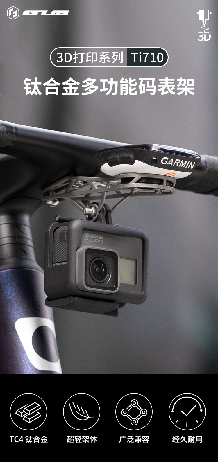 特點:鈦合金超輕架體,3D打印工藝,居中安裝節(jié)省空間(一體把專用),兼容多種碼表,標(biāo)配運動相機轉(zhuǎn)接座,可擴展使用運動相機等配件