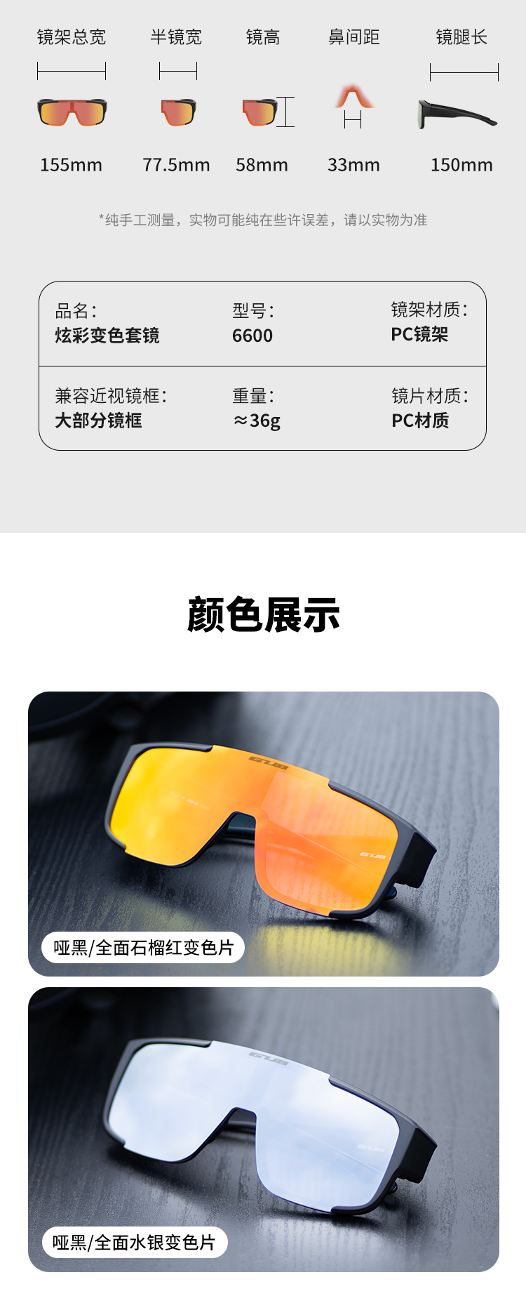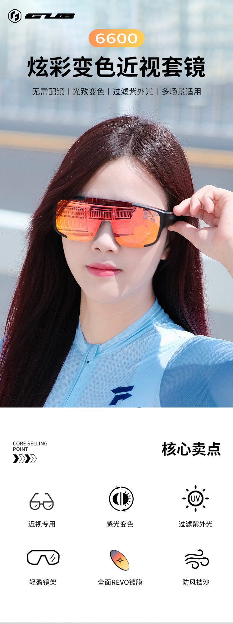 名稱(chēng):GUB 6600 炫彩變色近視套鏡