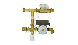 E2505型混水中心能夠?qū)⒛┒说嘏邷毓┧档?。?dāng)采暖末端散熱器與地暖同時(shí)存在,熱源供水溫度較高的系統(tǒng)中,將高溫供水與低溫回水混合,通過傳感器與溫控閥調(diào)節(jié)混合比例,達(dá)到降低供水水溫目的。