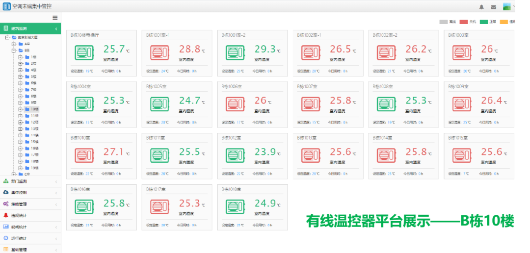 2、更換樓內(nèi)2100個(gè)房間的中央空調(diào)智能溫控面板,并對(duì)ABCD座末端溫控器及配套設(shè)備進(jìn)行安裝調(diào)試,并集成至綜合能源管理平臺(tái)中