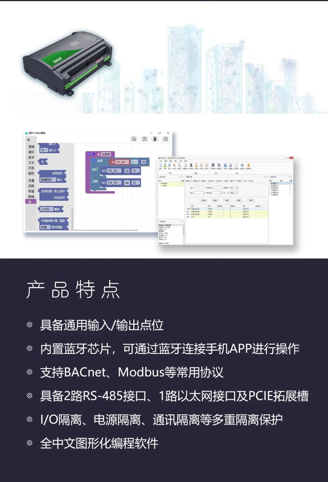 HE系列DDC控制器支持多種協(xié)議及總線, 帶通用輸入、輸出接口, 可自由編程、靈活擴(kuò)展。適用于冷水機(jī)組、熱泵機(jī)組、空氣處理機(jī)組、送/排風(fēng)機(jī)、精密空調(diào)、區(qū)域能源站、照明和給排水等應(yīng)用場景。