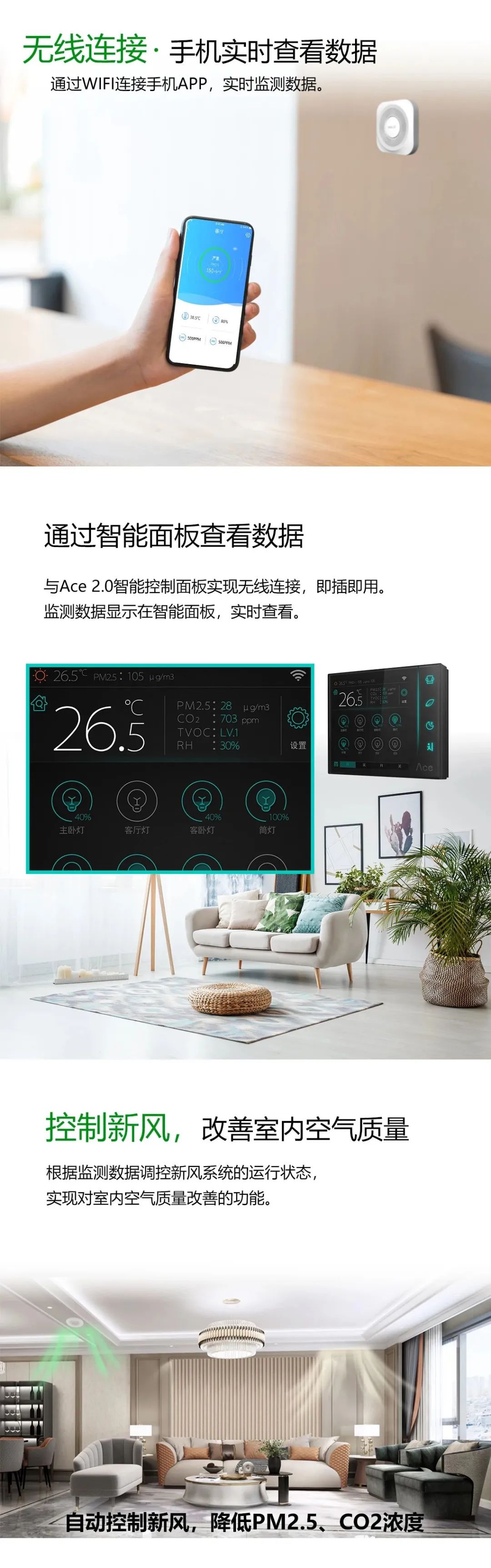 同時也越來越多地應用在樓宇自控系統(tǒng)和智能家居系統(tǒng)中,甚至很多樓宇加設獨立的空氣質(zhì)量檢測系統(tǒng)。如:西安國際醫(yī)學中心、亞投行總部大樓、太原市政府辦公樓、廈門萬安智能辦公大樓等項目。