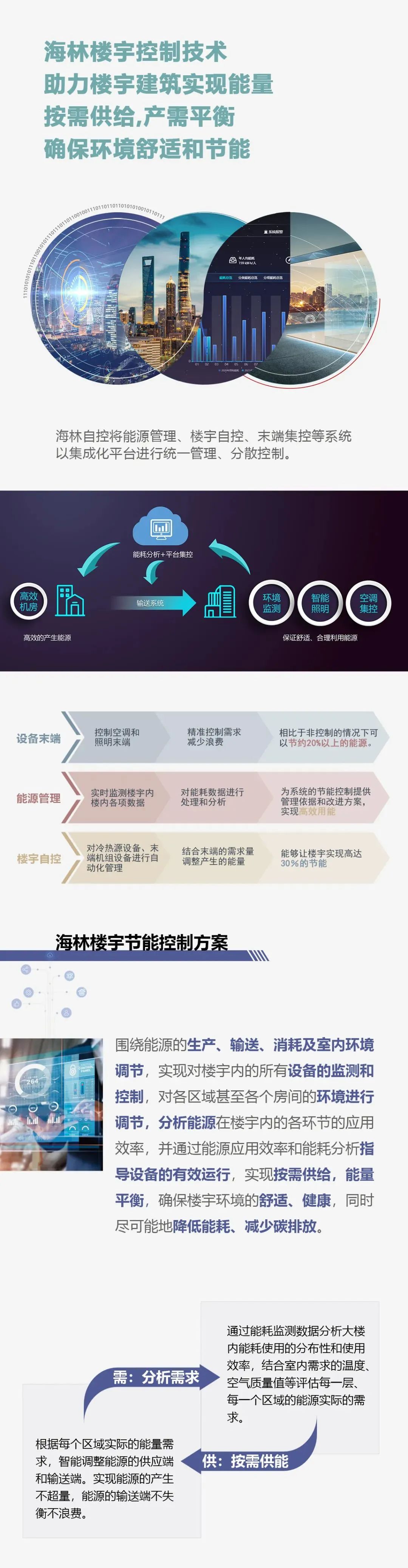 海林自控基于“自動控制+AI+IoT”技術(shù)及“樓宇自控+能源管理+微環(huán)境管理”方案,匯聚樓宇自控、能源管理及智能人居三大業(yè)務(wù)及全線產(chǎn)品,建立統(tǒng)一的數(shù)字化能源管理系統(tǒng)平臺,對建筑內(nèi)的空調(diào)、采暖、新風(fēng)、熱水、燈光、窗簾及溫度、濕度、空氣質(zhì)量和能耗,實施監(jiān)測、控制、分析和管理,創(chuàng)建舒適健康和節(jié)能的建筑環(huán)境,同時實現(xiàn)節(jié)能降耗,助力建筑樓宇脫碳,促進可持續(xù)發(fā)展。
