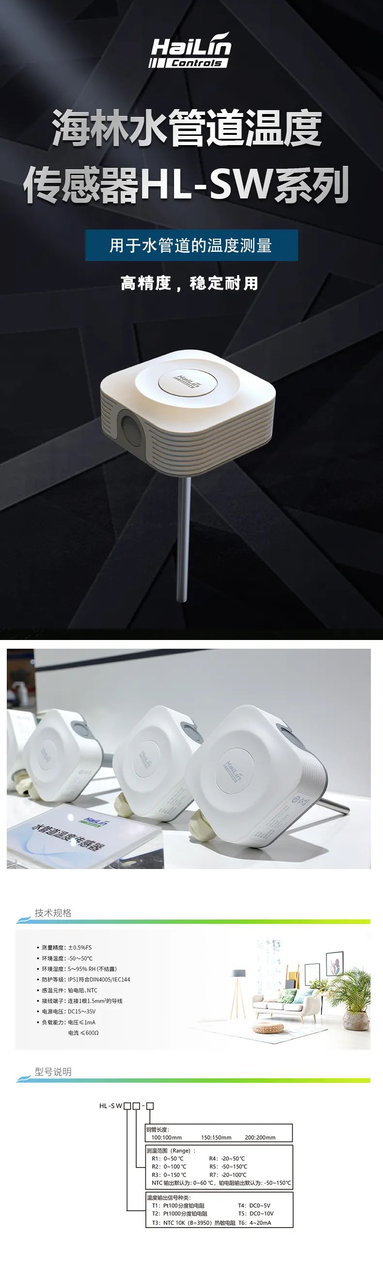廣泛應(yīng)用于商業(yè)建筑、實(shí)驗(yàn)室、工廠以及國家體育館、國家速滑館、“三場(chǎng)一村”冬奧會(huì)項(xiàng)目等大型場(chǎng)館中,主要用于水管道的溫度測(cè)量,可提供多種溫度測(cè)量范圍,以適應(yīng)管道流體介質(zhì)的不同;可提供NTC、鉑電阻、電壓、電流信號(hào)輸出,適應(yīng)各種控制系統(tǒng)的不同要求。當(dāng)用于水管道測(cè)量時(shí),應(yīng)配套水溫套管使用。