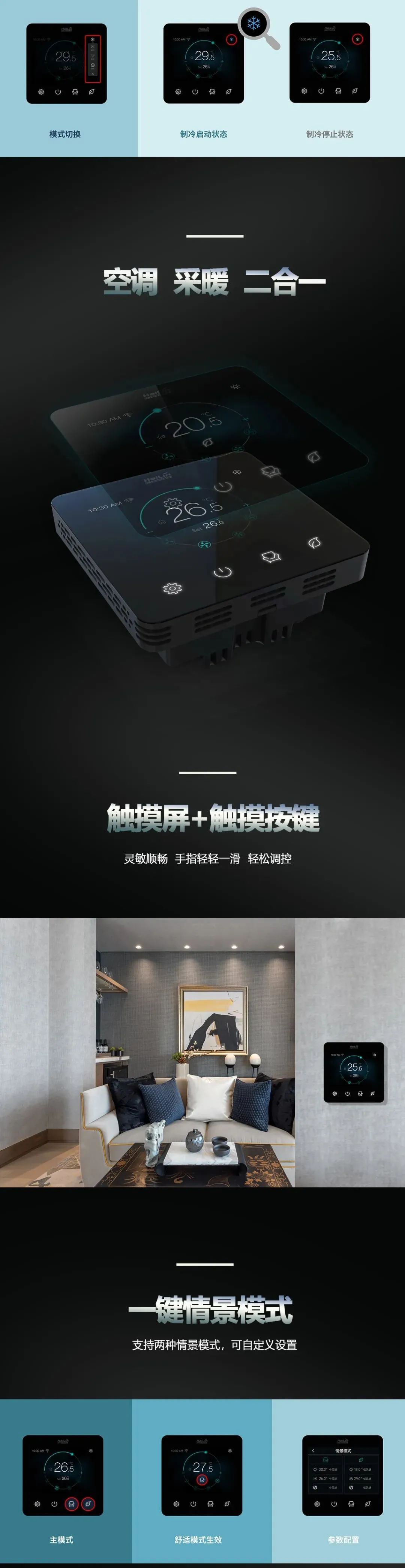 海林炫動溫控器適用于中央空調(diào)及供熱采暖的室內(nèi)溫度控制。