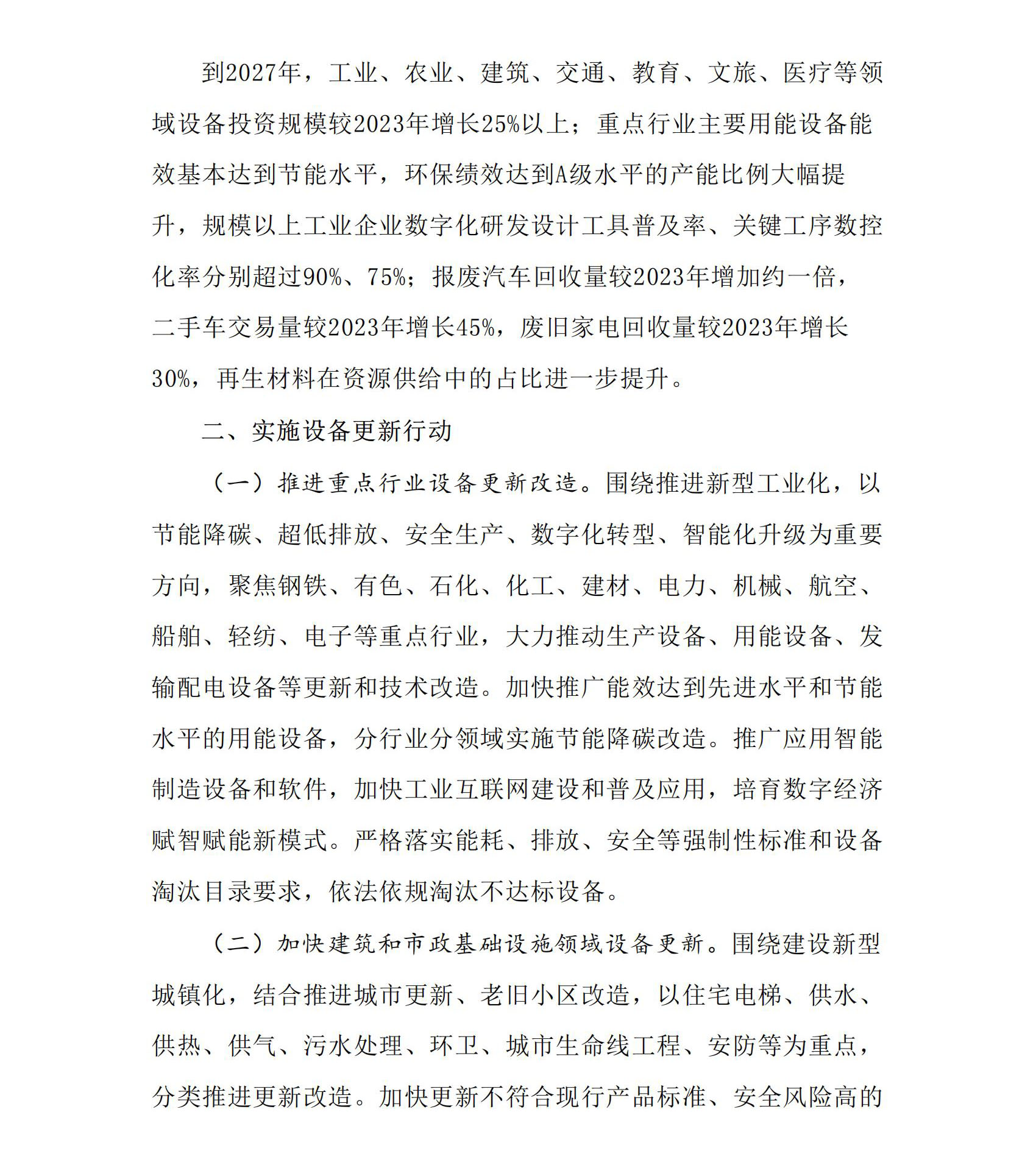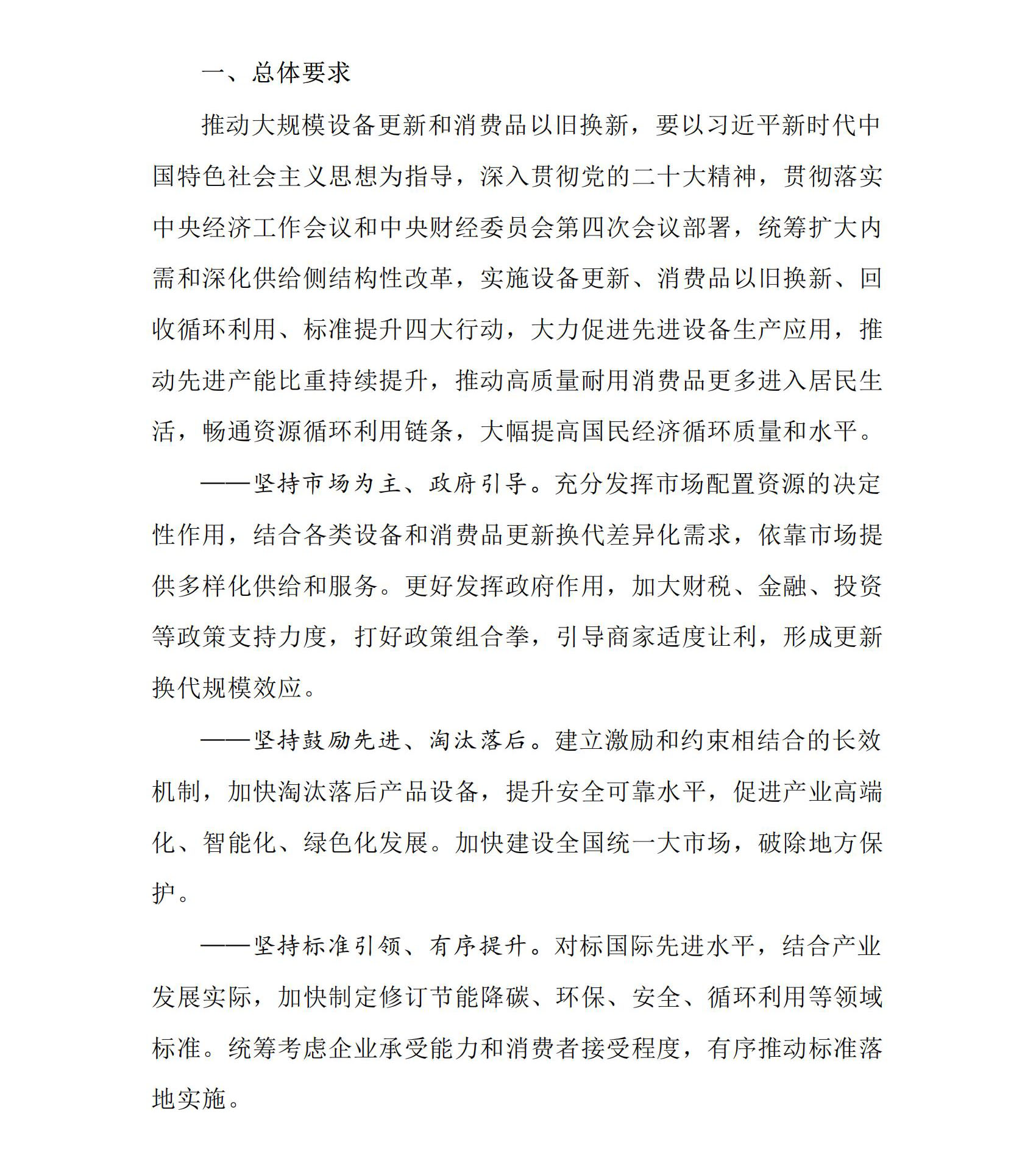 3月13日晚間,國務(wù)院正式印發(fā)《推動大規(guī)模設(shè)備更新和消費(fèi)品以舊換新行動方案》。