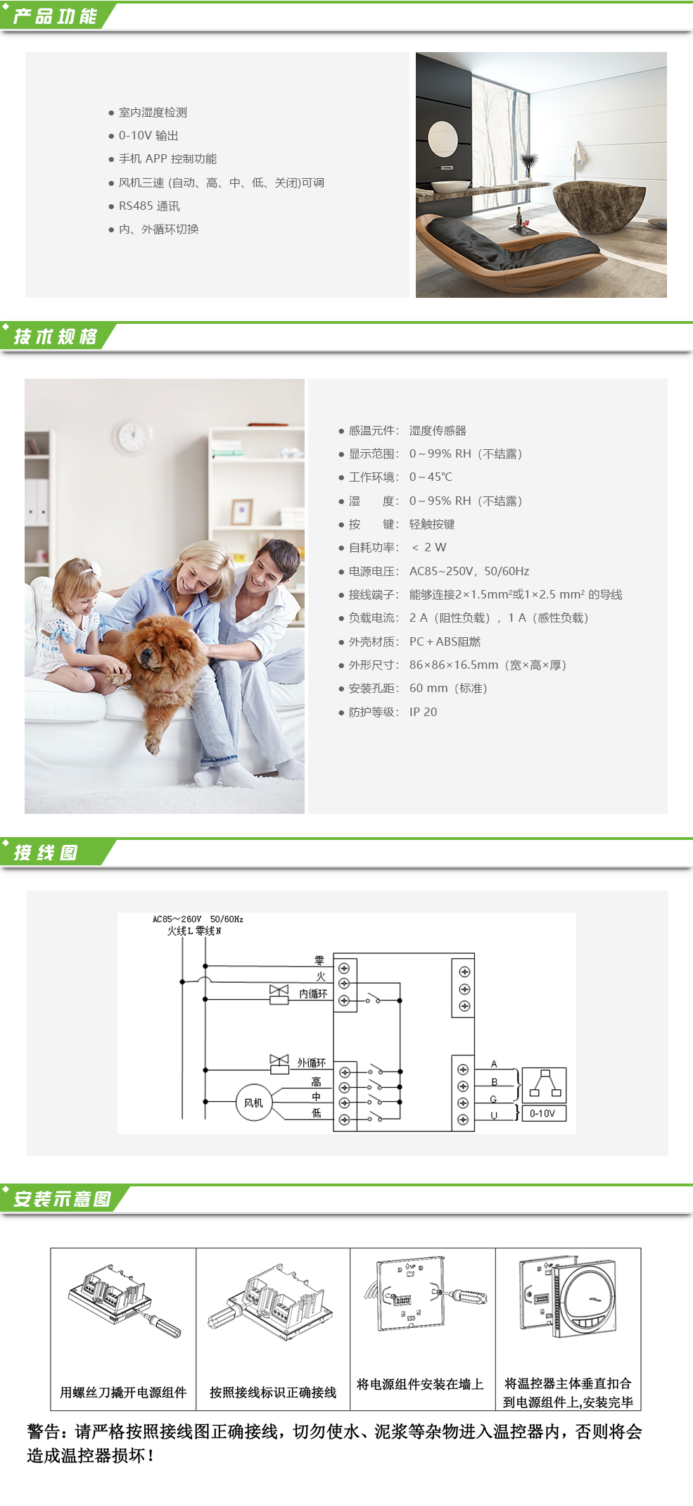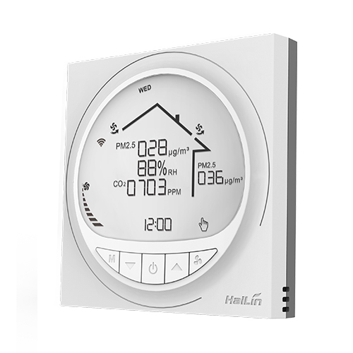 豪華型大液晶顯示新風控制器,可通過無線 APP 遠程操控,適用于工業(yè)、商業(yè)及 家庭居室的新風控制,可選擇風機為室內(nèi)、室外循環(huán)模式,風機三速(自動、高、中、 低、關(guān)閉)可調(diào),帶 RS485 通訊轉(zhuǎn)換控制。 新風控制器采用微電腦控制技術(shù),大屏幕液晶顯示,可從云端獲取室內(nèi)環(huán)境信息 并可通過液晶顯示:PM2.5 濃度顯示(ug/m3)、濕度顯示(%RH)、CO2濃度顯示(PPM)、 時鐘顯示 ...