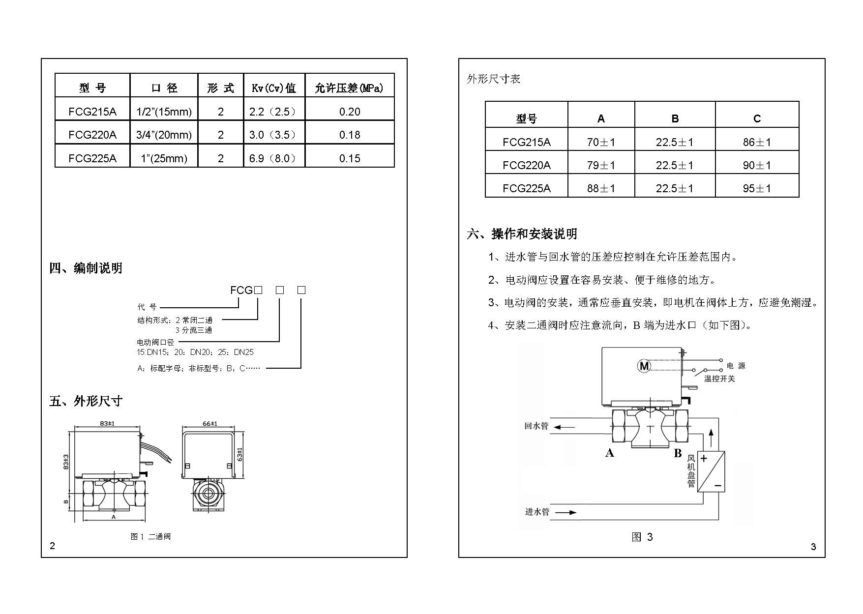 FCG 系列電動閥用于空調(diào)末端水路控制。其由溫控器(又稱恒溫器)控制電動閥電機(jī),并通過減速機(jī)構(gòu)和復(fù)位彈簧使閥門開或關(guān),從而實(shí)現(xiàn)管道里的介質(zhì)流通或斷開,再通過風(fēng)機(jī)盤管送風(fēng),實(shí)現(xiàn)溫度的自動控制。