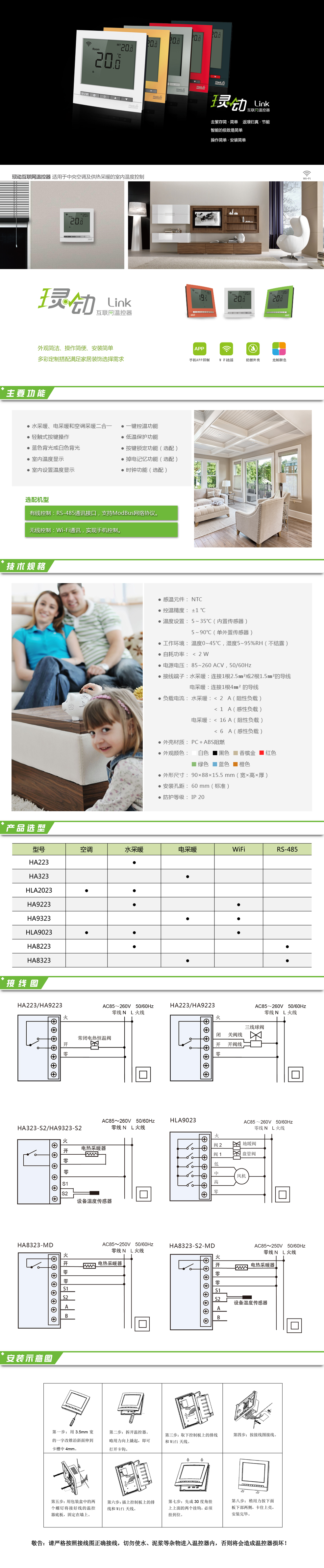 ?動采暖溫控器包括“本地控制、有線控制、無線控制”三種類型,適用于家庭地板采暖系統(tǒng)或散熱器采暖系統(tǒng)的室內(nèi)溫度控制。一體化弧形表面設計簡潔流暢,多彩定制搭配滿足家居裝飾選擇需求,進口材質(zhì)安全耐候性強,網(wǎng)絡連接安裝簡單操作便捷,感知靈敏控制精準。