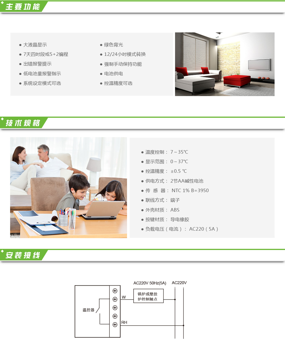 鍋爐溫控器A3253使用電池供電,用于控制燃?xì)獗趻鞝t、燃油及電子鍋爐等制熱設(shè)備,適用于家庭、辦公樓、寫字樓、學(xué)校等場所的采暖溫度控制。