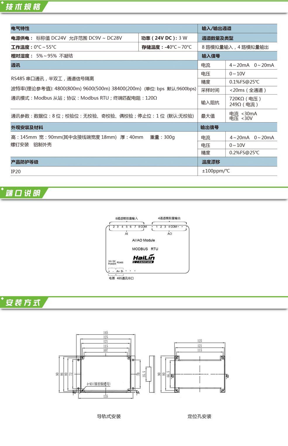 I/O擴(kuò)展模塊HL-M02/HL-M03/HL-M04是一款可通過(guò)RS485接口與遠(yuǎn)程主機(jī)或者樓宇控制器通訊的設(shè)備;該產(chǎn)品具有8路電壓0~10V或0~20mA或4~20mA模塊量輸入、4路0~10V或0~20mA或4~20mA模擬量輸出。該控制器具有1路485通訊串口,可實(shí)現(xiàn)與MODBUS設(shè)備通訊。應(yīng)用于樓宇自控系統(tǒng)中與樓宇控制器配套使用。