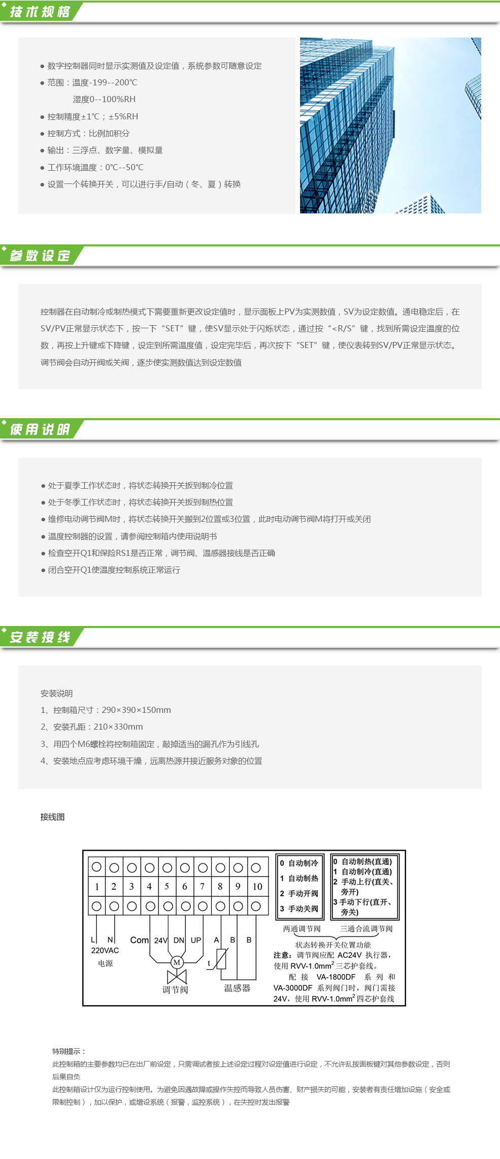 HL-KZ1201系列溫度控制箱內配裝CH402系列鋰化表控制器,用于水管道或風系統(tǒng)的控制。通過對檢測參數與箱內控制器上用戶設定的參數相比較、判斷,來控制電動調節(jié)閥,達到水溫式室溫的自動調節(jié)。